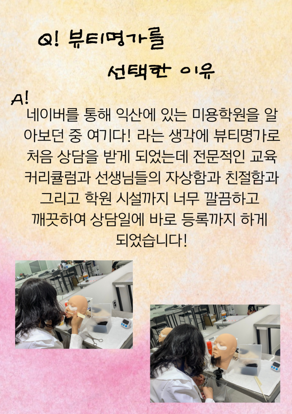 졸업생 인터뷰 페이지 정보 작성자뷰티명가 댓글 0건 조회 140회 작성일 25-07-17 15:37 본문 졸업생 인터뷰 목록 답변 이전글졸업생 인터뷰 25.07.17 다음글졸업생 인터뷰 25.06.24 댓글목록 댓글목록 등록된 댓글이 없습니다.